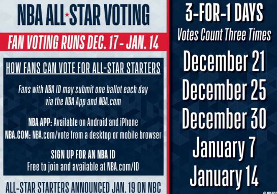 NBA官宣全明星投票流程:12月18日开启 首发名单将于1月20日公布