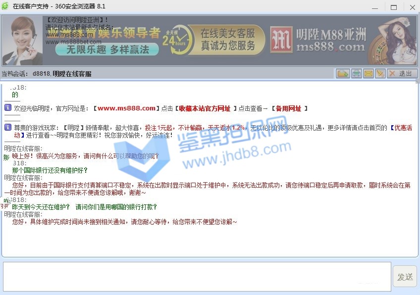 前几天在大发bet入款2000。没有申请任何优惠情况下下了几场比赛。流水妥妥的满足要求。昨晚申请取款的时候。三次被拒绝。询问之下,大发工作人员嚣张的回复了一句。你申请了首存百分50活动。我当时就呵呵了,就你这优惠15倍流水谁有这福气享受了!大发居然回复,这是你满足优惠情况下,系统自动申请的。我也是服了,你们听说过自己不申请优惠的情况下,系统自动给你申请,强制你们优惠吗。大发给的回复是我自己注册的时候自己默认优惠由系统自动派发。我玩这么久的体育就没听说过还有这样的,你们大发真是心灵手巧啊。客服当时就回复了一句你发现钱多的时候不会自己找客服吗,反正你都盈利了,多赢点有什么关系。你们说说看,这是一个大牌公司应该有的态度?然后我就问在哪里可以看到红利派彩,客户就会员看不到,他们说有就有!我耐着性子去算了一遍自己的下注流水,发现2000的本金下注的比赛输赢情况正好符合我现在账号余额,没有多余的钱于是我找客服理论。他也发现自己算错了就说了一句核查错误我再申请取款。然而第二次还是失败的!于是我在大发体育的本金就赚到沙巴体育去申请取款。还是取款失败!我再次找客服理论,大发只回复了一句我从大发体育转到沙巴体育。跨平台转账需要多1倍流水,就是还要4325的流水。我当时就懵逼了。你们公司自己的平台为什么我转账之后还要多完成一倍流水!客服就呵呵了我,说了句公司规定。公司规定,这口气就跟那些黑平台不给出款说的专员审核还有风险控管部门核实不是一个态度吗?然而大发,一个在业界享有声誉的公司,客服居然是这个态度。我就问他你们平台注册还有下注条例哪里有写明这些。客服的回答让人咂舌,他说只要公司规定就可以。退一万步说你们这规定是合理的,公司要求的。也应该写明了规则,会员需要有知情权,你们这样的说法一开始就建立在不诚信的基础上。说到这里希望吧里有在大发bet下注的朋友告知一声,是否大发自己公司内的下注平台资金转账需要多刷一倍流水!还是说我受到不公平要求!因为他们的强制要求,一开始大发在客户不知情也没有申请的情况下自动添加彩金,并且无任何详细规定写明平台转账需要多完成一倍流水,强制完成莫名其妙流水。从头到位大发bet态度就是嚣张!最后希望鉴黑担保网把这个黑网曝光,不要让更多老哥上当受骗!
