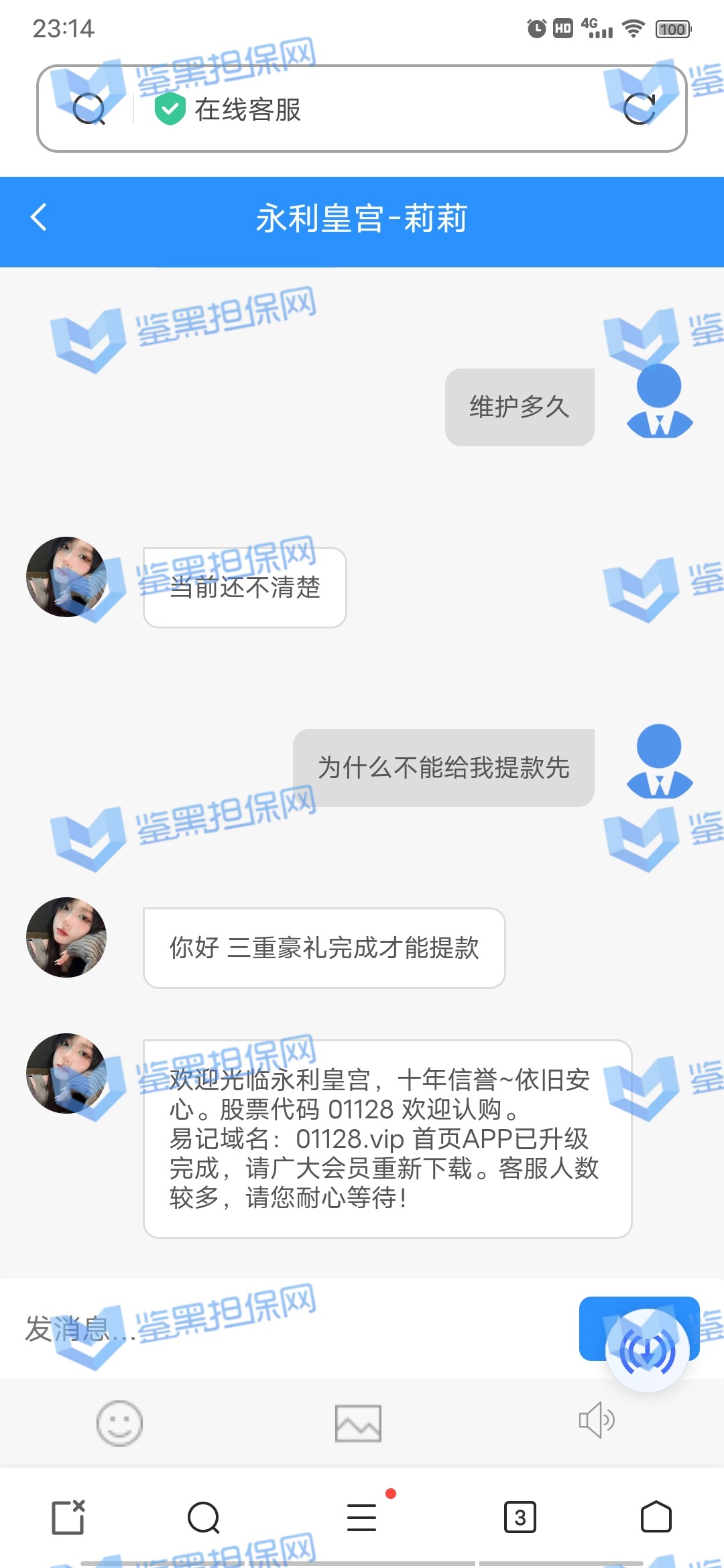 4.用户提交维权需为本人提交,若代替让人发布维权鉴黑担保网将拒绝受理;