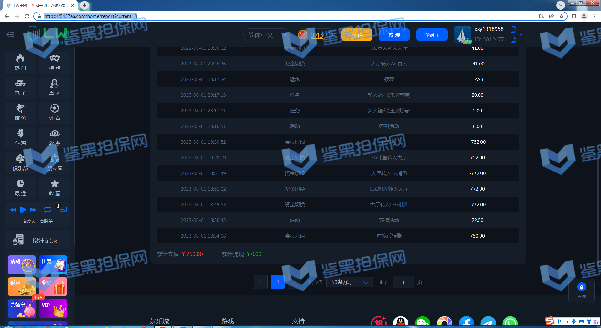 本人账号 ey888888 在6月27日注册的账号,马上就收到了电话回访,说让我参加首存50%,我充值了100领了50输掉了,次日6月28又收到客服电话邀请我再来参加50%,这次充了300 送了150,提现501,先是接到核实银行卡和个人信息,最后说核实完毕,由于我是第一次提现需要把虚拟币的地址发给POP软件的专员,POP这个软件是属于拉黑删除直接自动清空聊天记录的,本人有幸录过充值的视频,请看图1-图3 是和专员客服的聊天记录和充值记录,本人能提供3仅3天的3次的电话通话录音证明是他们电话特邀邀请充值的,本人的确在鉴黑担保网查过他们的官网没有记录当我打开pop聊天软件找专员的时候发个消息在吗聊天记录直接清空了还显示对方不是你的好友,当我重新登录平台的时候显示密码错误,直接修改客户会员的登录密码,找客服就说什么电子套利不做任何解释,本人仅3天都是只用流量进行游戏,玩了MG电子 和PG电子,本人只有一个账号 名下只有一张银行卡,没充值之前一口一个哥哥发那个语音夹子的说,还劳逸结合,有空再来,赢钱了提现直接相当于封号了,次平台多个POP专员 XX001 - XX0012 目前我知道有12个专员XX+后面的数字 001-012排序过去的,估计追回渺茫了,除非鉴黑团队能联系到比客服还高级别的管理。