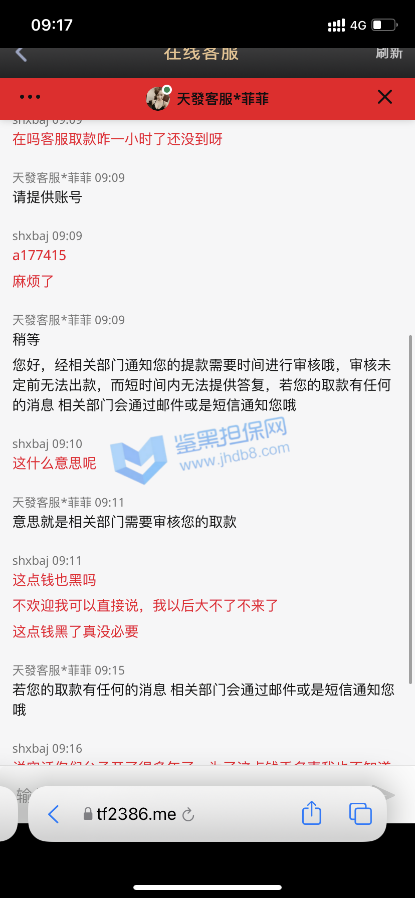 3.用户提交维权申请后资料不齐全,需在一周内补齐鉴黑担保网客服要求的资料,若超过一周时间没有完善维权信息,维权将因资料不全拒绝受理;
