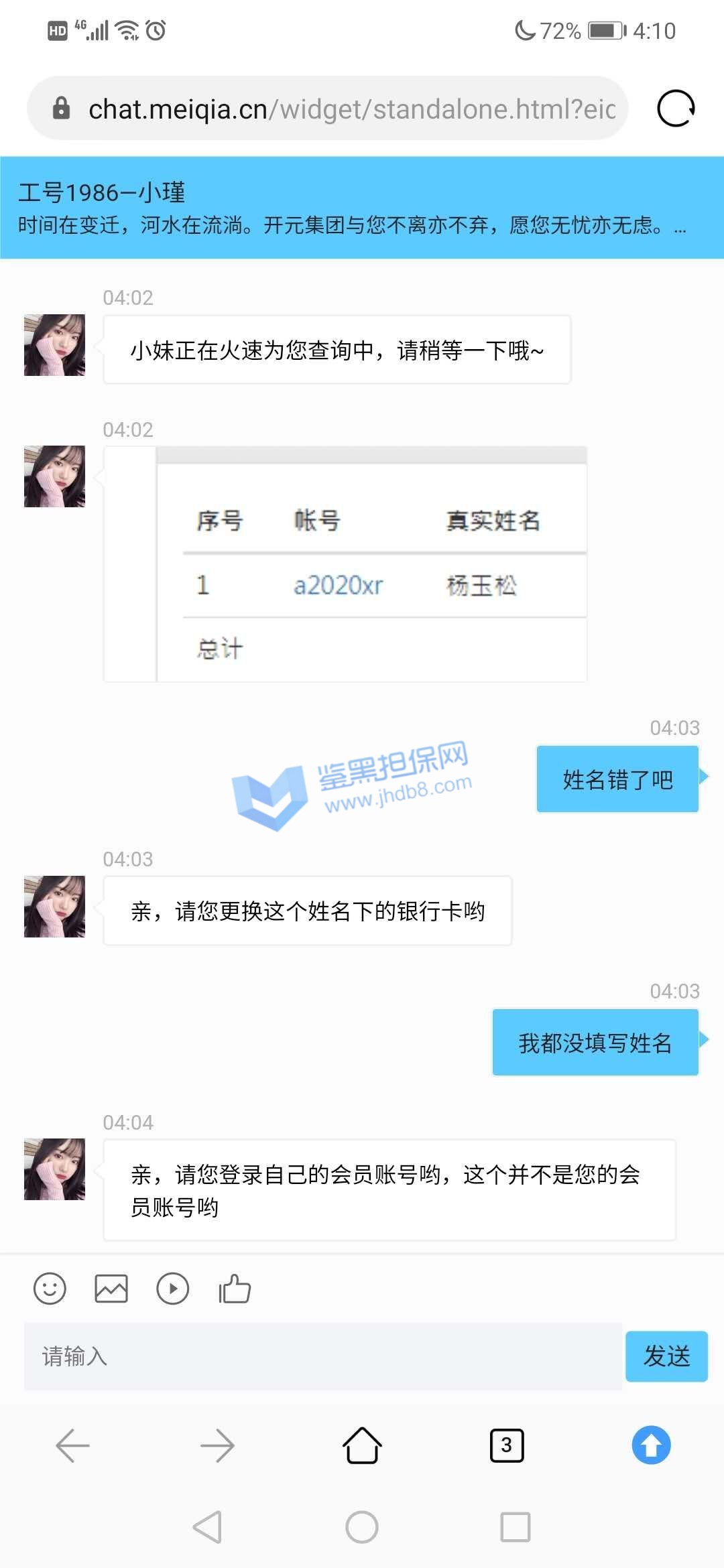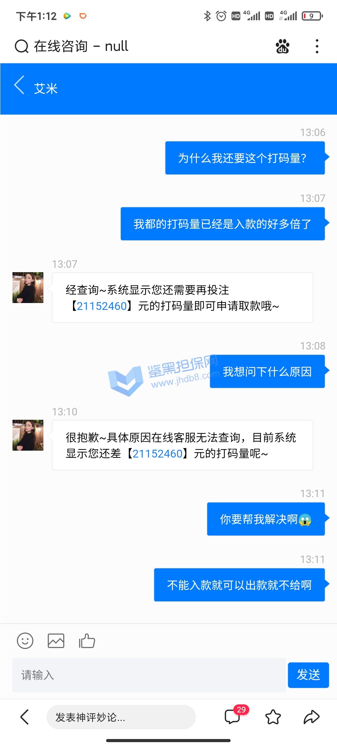 4.用户提交维权需为本人提交,若代替让人发布维权鉴黑担保网将拒绝受理;