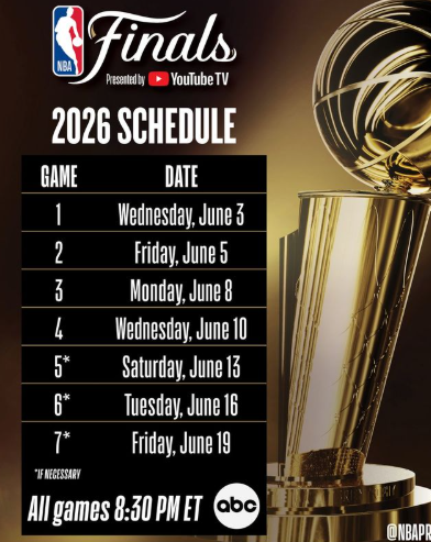 体育媒体观察网的刘易斯撰文指出,按照惯例,NBA总决赛赛程会在晚些时候公布,但本赛季联盟对常规赛程安排做出了小幅调整,原因是国际足联世界杯同期将在北美举办。