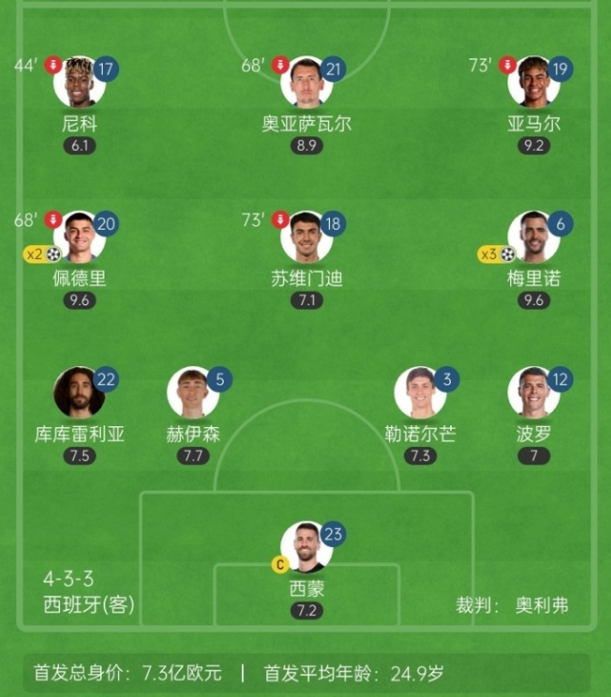 我不认为存在明显差异。西班牙队的风格与巴塞罗那队或其他追求控球、渴望通过控球主导比赛的球队非常相似。德拉富恩特不是那种倾向于保守防守的教练,他主张高位逼抢、保持控球权、在对方半场组织进攻…… 他是一位主打进攻的教练。当然,在某些特定时刻,西班牙队也懂得如何合理回撤防守。当西班牙队取得领先时,我们的防守做得很扎实,同时借助亚马尔和尼科-威廉姆斯的速度发起反击。