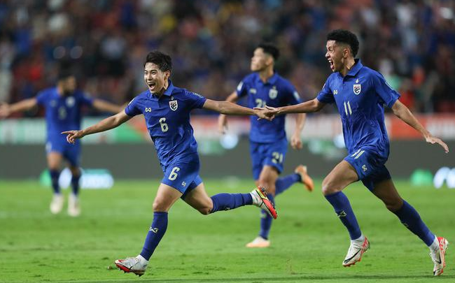 11月16日20:30,2026美加墨世界杯暨2027沙特亚洲杯联合预选赛第二阶段C组第1轮中国客场与泰国的比赛,在泰国曼谷拉贾曼加拉体育场进行。最终,中国2-1逆转获胜。第23分钟,沙拉奇轰入世界波;第29分钟,武磊接韦世豪助攻铲射扳平;第74分钟,替补出场的王上源接谢鹏飞助攻头球顶入制胜球。首轮战罢,韩国、中国3分,泰国、新加坡0分。11月21日20:00,中国第2轮在深圳大运中心主场迎战韩国。